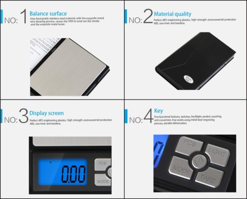 Поради малкия си размер, автономно захранване от 2 батерии AAA и висока точност на претегляне.