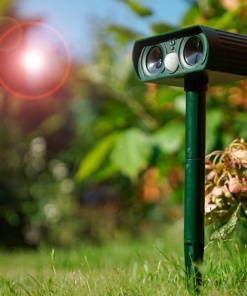 Мощен ултразвуков уред със соларен панел и двойни излъчватели на ултразвуков сигнал. Този ултразвуков уред е предназначен за защита от широк спектър диви и домашни шивотни.
